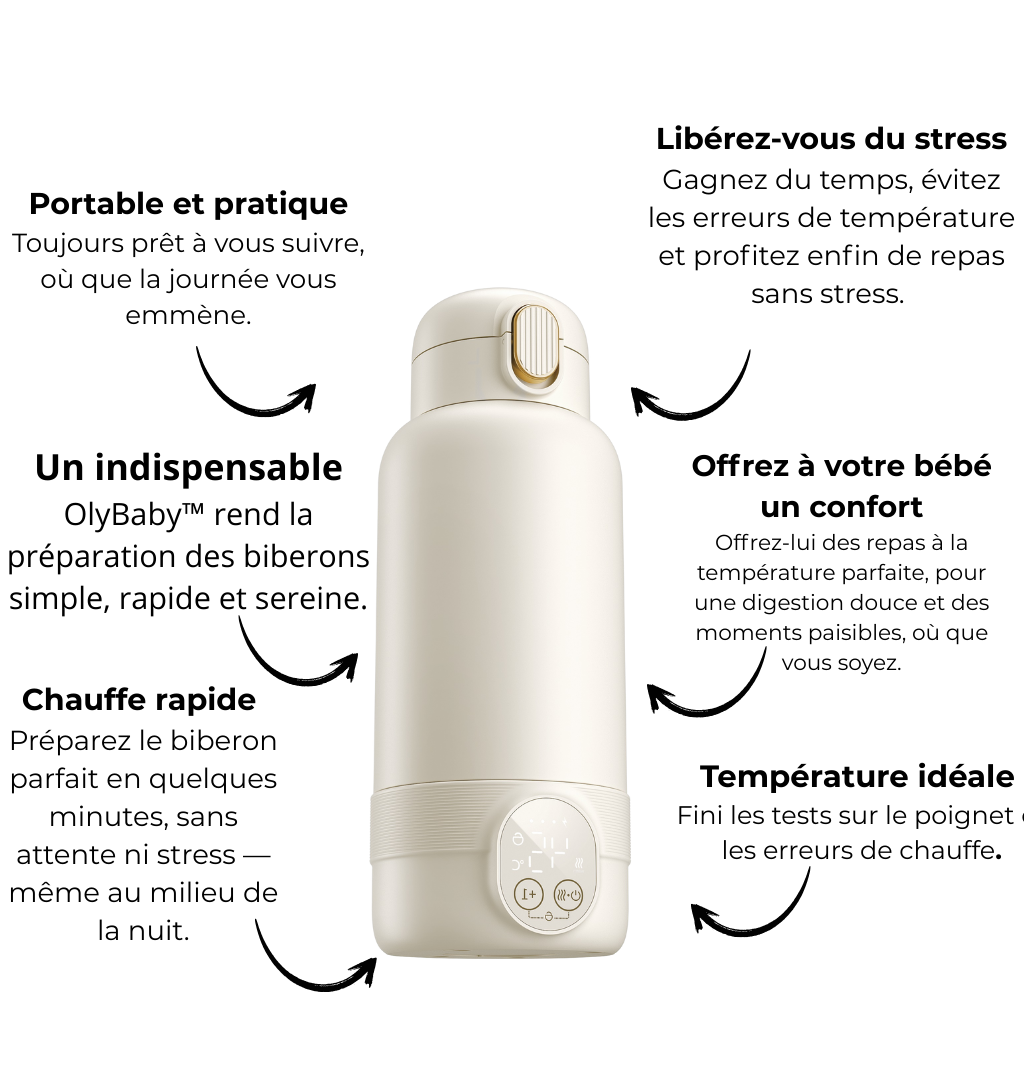 Oui ! OlyBaby™ a été spécialement conçu pour vous accompagner partout. Léger, compact et sans fil, il se glisse facilement dans un sac à langer ou une valise pour réchauffer les biberons même en voyage.