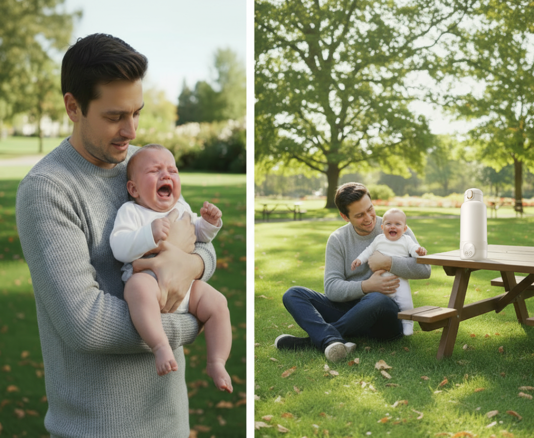 Fini les pleurs et le stress au moment du biberon. Avec Oly Baby, la température est toujours parfaite, où que vous soyez.